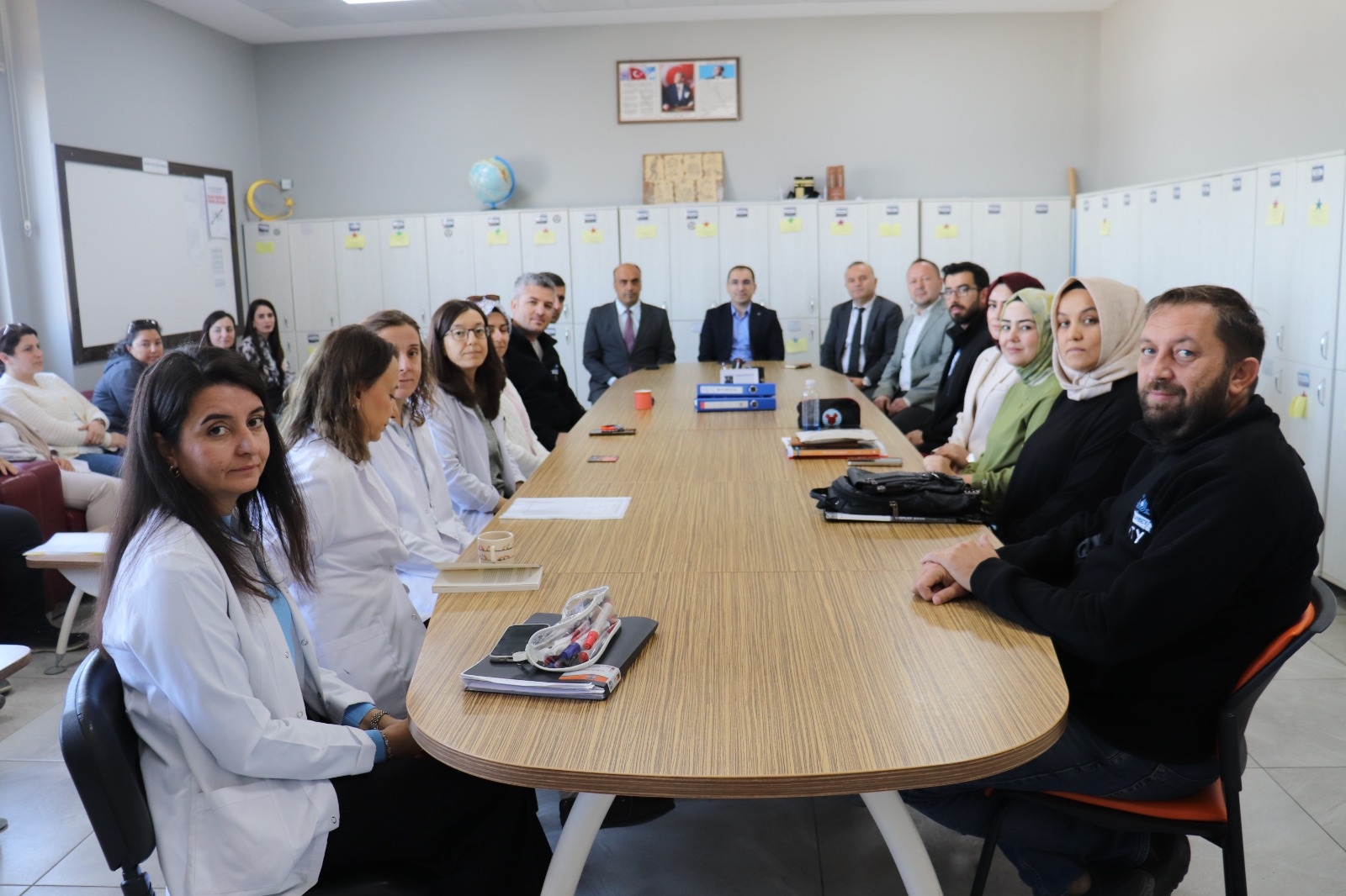 Ziyarette okul yöneticileri ve öğretmenlerle bir araya gelen Kaymakam ÖZDEMİR ve İlçe Millî Eğitim Müdürümüz KÜÇÜKKAĞNICI, yeni eğitim yılına dair değerlendirmelerde bulunarak Türkiye Yüzyılı Maarif Modeli, Yeşil Vatan bilinci, aile eğitimi ve ailelerin eğitim sürecindeki önemi üzerine bilgilendirmelerde bulundular.